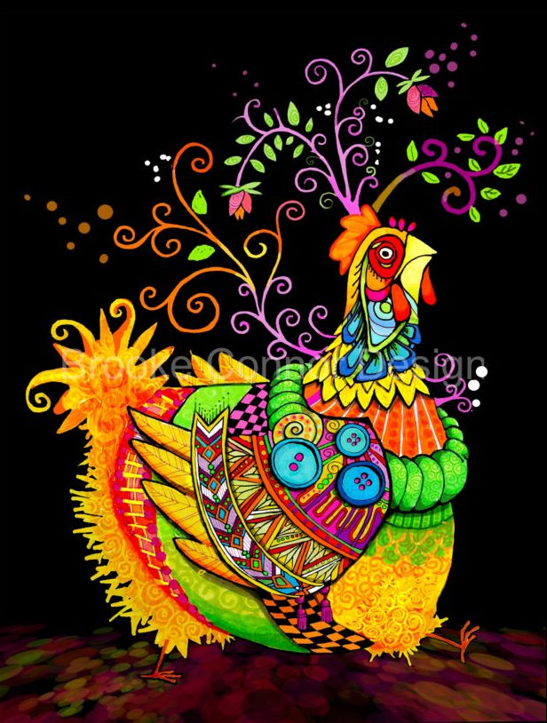 "Auntie Chicken" by Brooke Connor is a delightful image available in a number of materials and sizes.