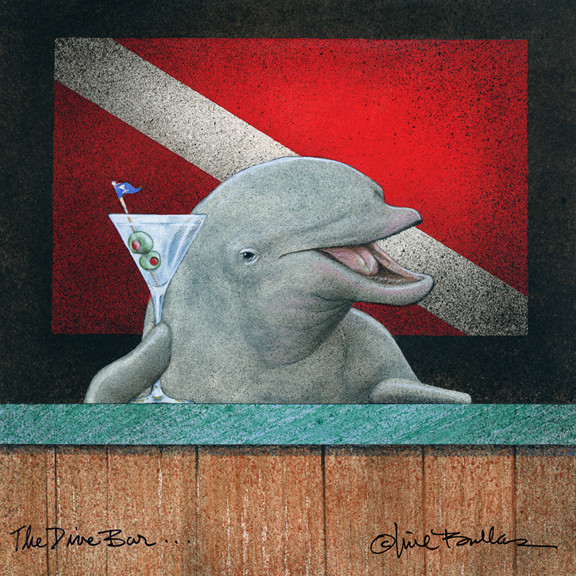 This piece is from his "Happy Hour Collection" which is inspired from vintage bar designs. Will Bullas brings a sense of humor to each of his paintings, the title and imagery create a cute and witty play on vintage bar prints.